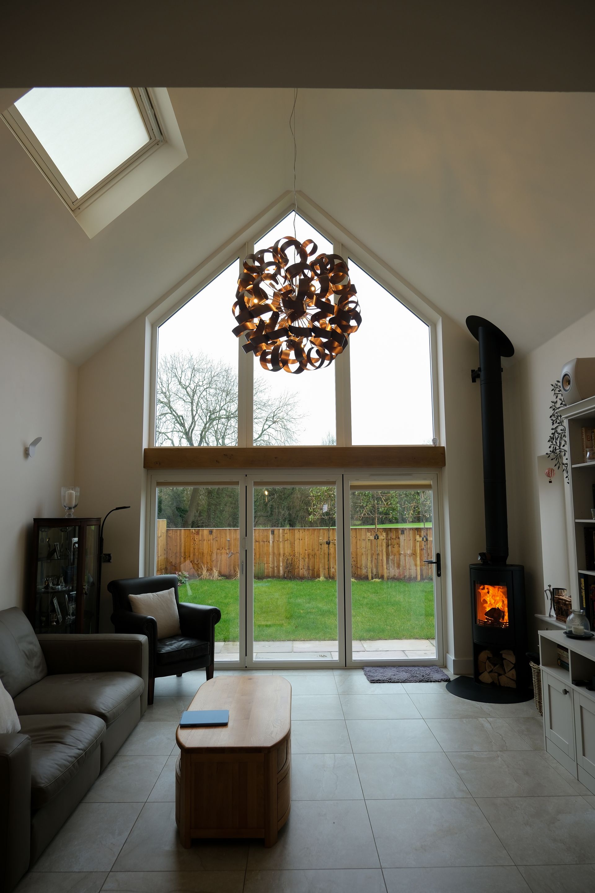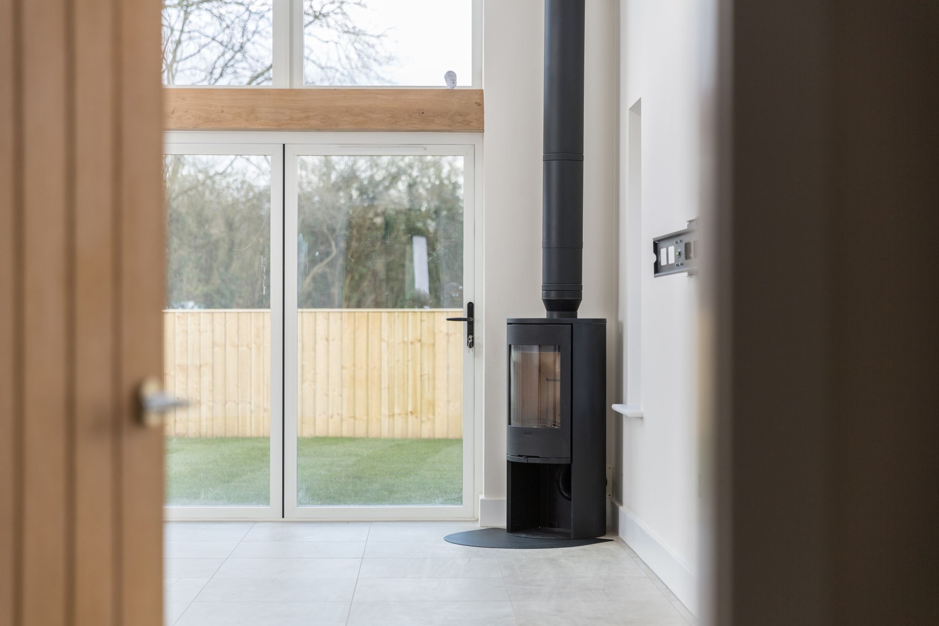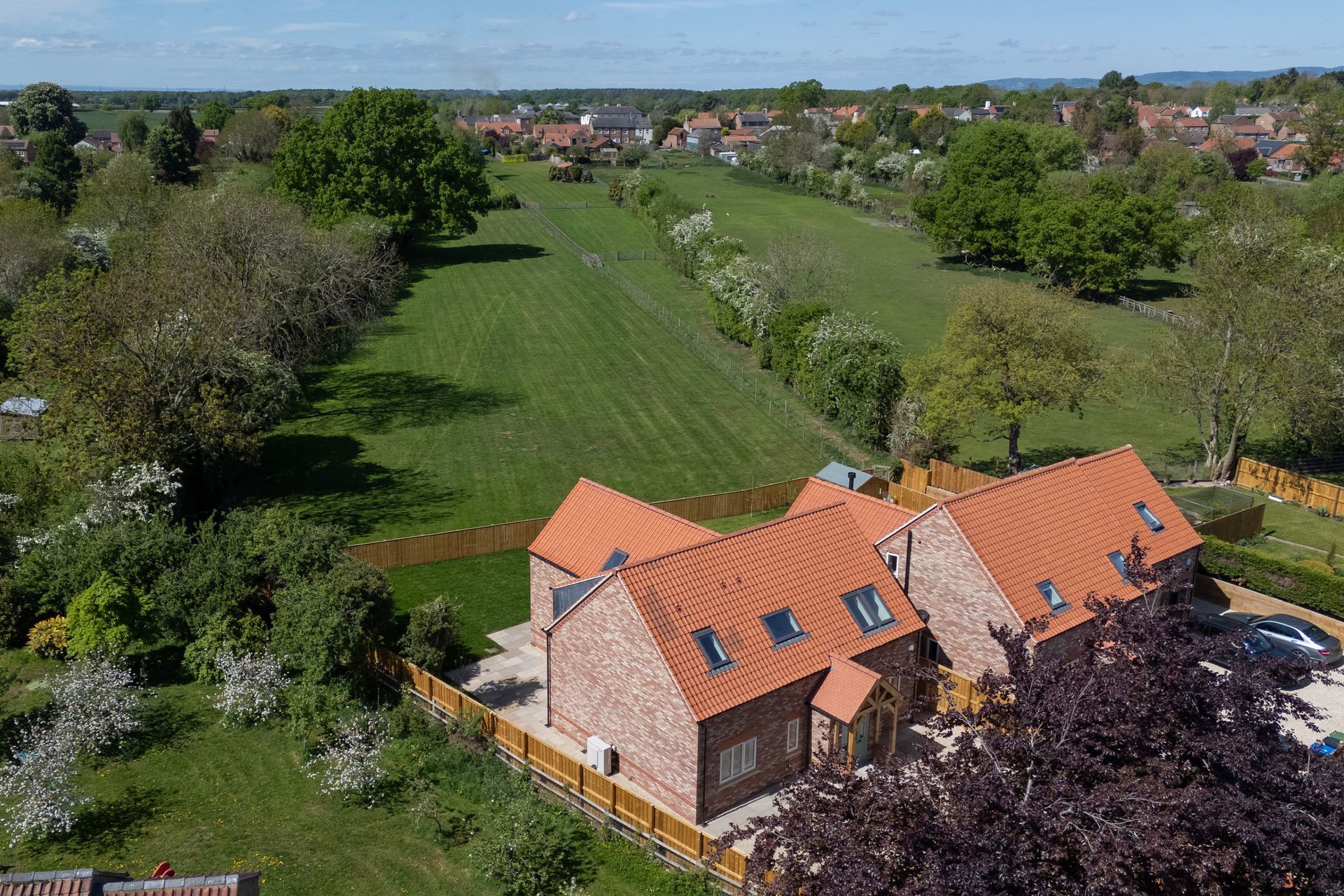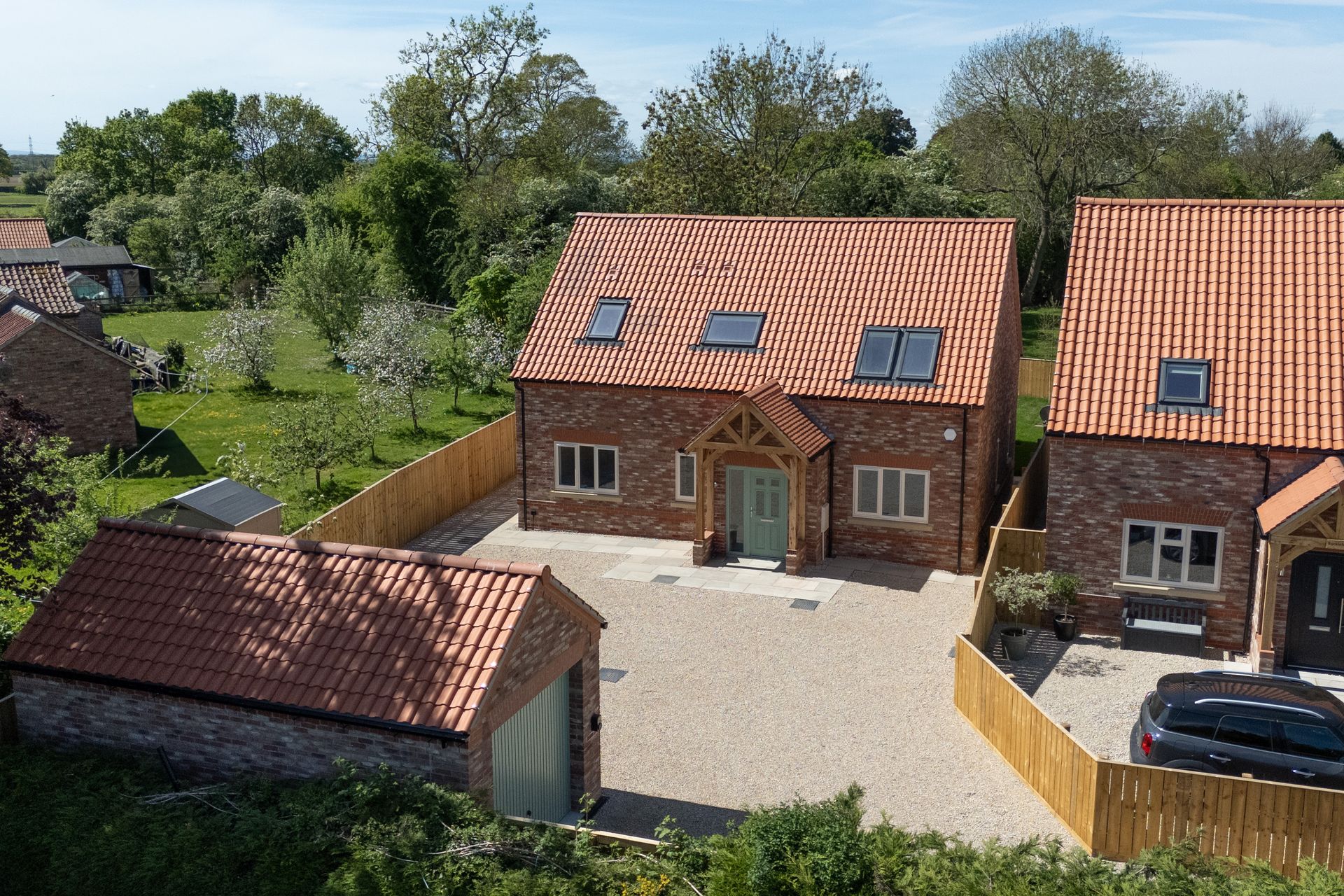 Characterful timber porchways create an inviting first impression, while log fires add warmth and charm to the living spaces. Velux windows maximise natural light throughout, and integrated solar panels provide improved energy efficiency—combining traditional features with contemporary sustainability.